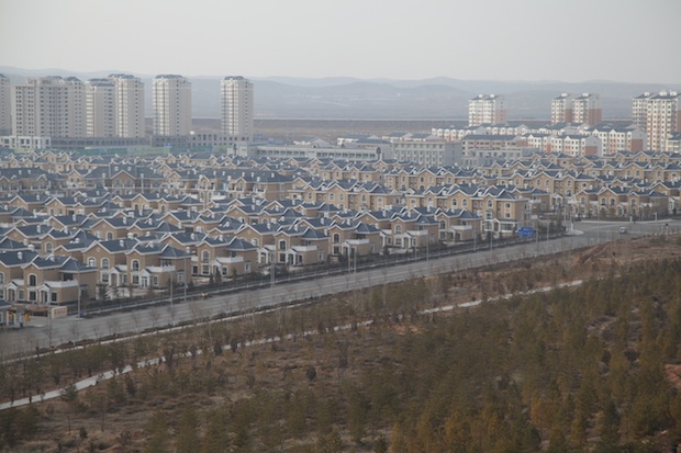 Esta ciudad, mejor dicho, el nuevo distrito de esta ciudad, es una parte muy importante del salto del fenómeno de las ciudades fantasmas chinas a los medios de comunicación internacionales. La ciudad responde al intento de la planificación de un nuevo distrito que poseyera una capacidad cercana al millón de personas. El proyecto atravesó diversas fases desde su inicio el año 2003 y al final devino en una zona residencial con capacidad para albergar hasta 300,000 personas pero en la que residen poco más de 30,000 según el censo del cierre del pasado año 2013.