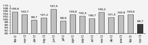 - Hipotecas constituidas sobre viviendas es de 1.573 millones de euros, un 38,5% menos respecto a marzo de 2012.